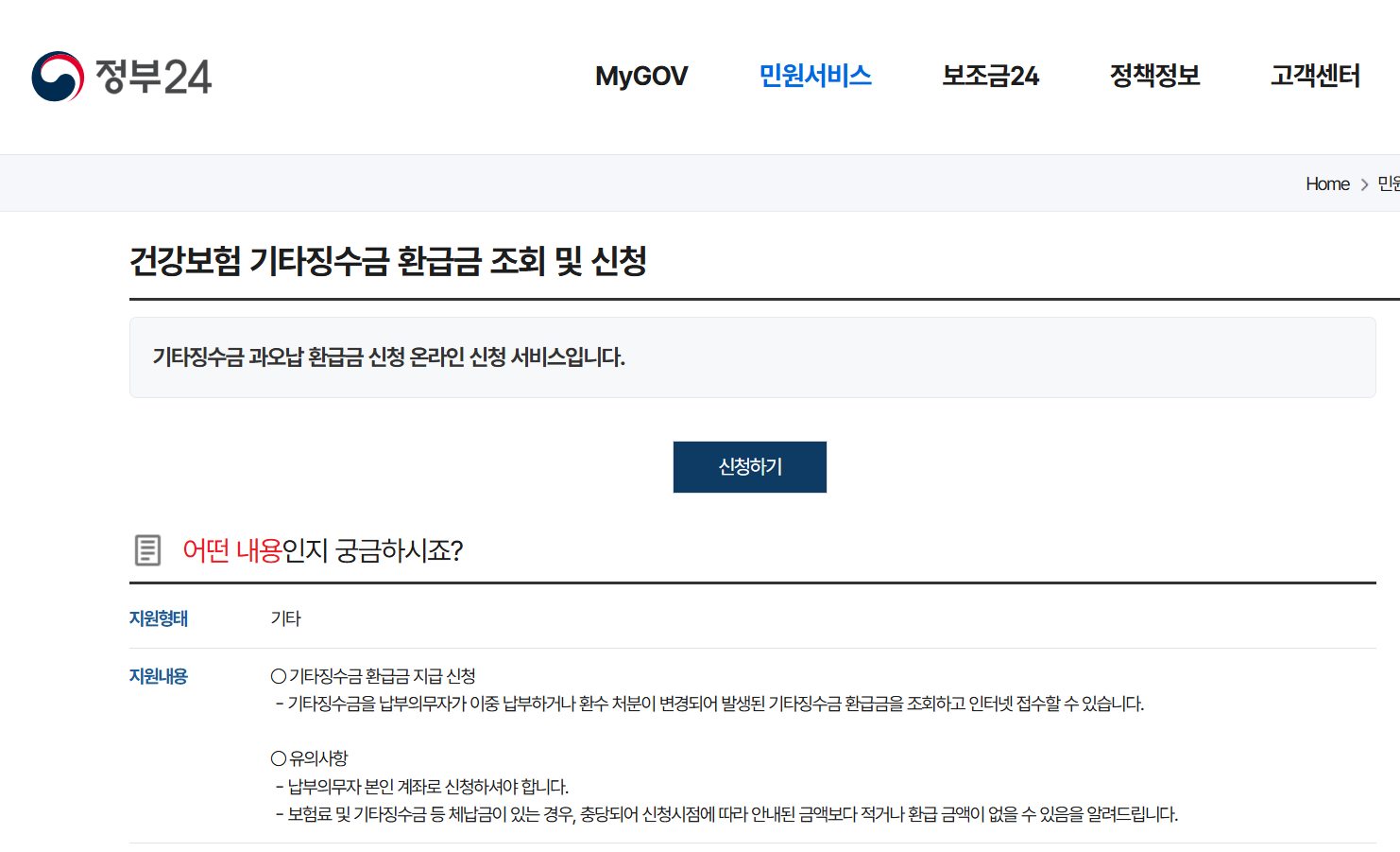 간단하게 환급금 조회를 하셨다면, 두번째 방법을 알려드리도록 하겠습니다. 두번째로 조회하실 수 있는 홈페이지는 바로 정부 24 홈페이지 입니다.