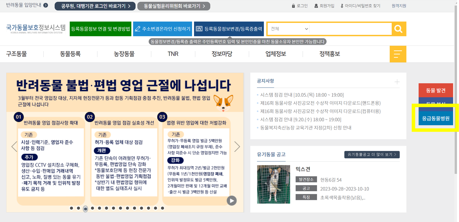 국가동물보호정보시스템 사이트 : https://www.animal.go.kr/front/index.do