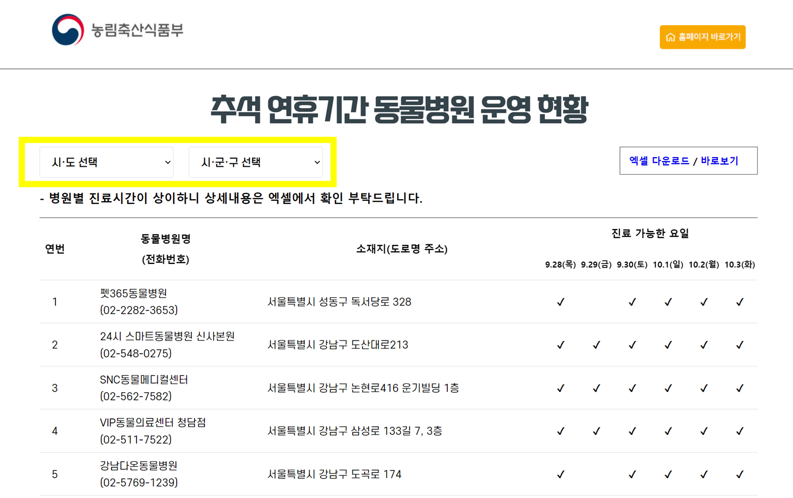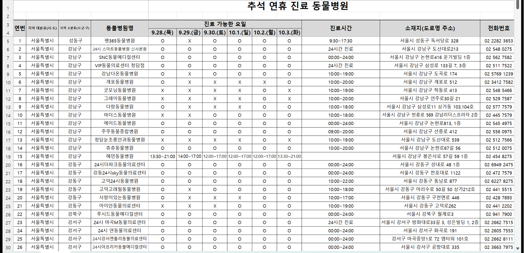 추석 연휴기간 동물병원 운영여부 확인 방법